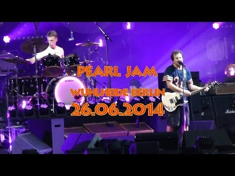Berlin Wulheide, am 26. Juni 2014. Es hat tagelang geregnet. Es bleibt bewölkt obwohl kein einziges Tropfen fällt während pearl jam spielen. Die Jamily , ganz vorne hätte sich am Ende wahrscheinlich gewünscht, es hätte geregnet. Zum Glück gab Eddie Vedder ganz viele Becher mit Wasser aber natürlich auch eine Flasche Wein für sie aus.